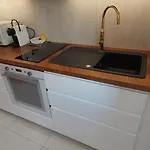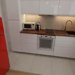 O apartamento vem com cozinha totalmente equipada microondas, chaleira elétrica e forno, bem como TV, varanda e ferro de engomar. Este apartamento pode acomodar até 2 hóspedes. Há um quarto separado com roupa de cama e almofadas hipoalergénicas. Chuveiro, secador de cabelo e lençóis de banho estão oferecidos na casa de banho.